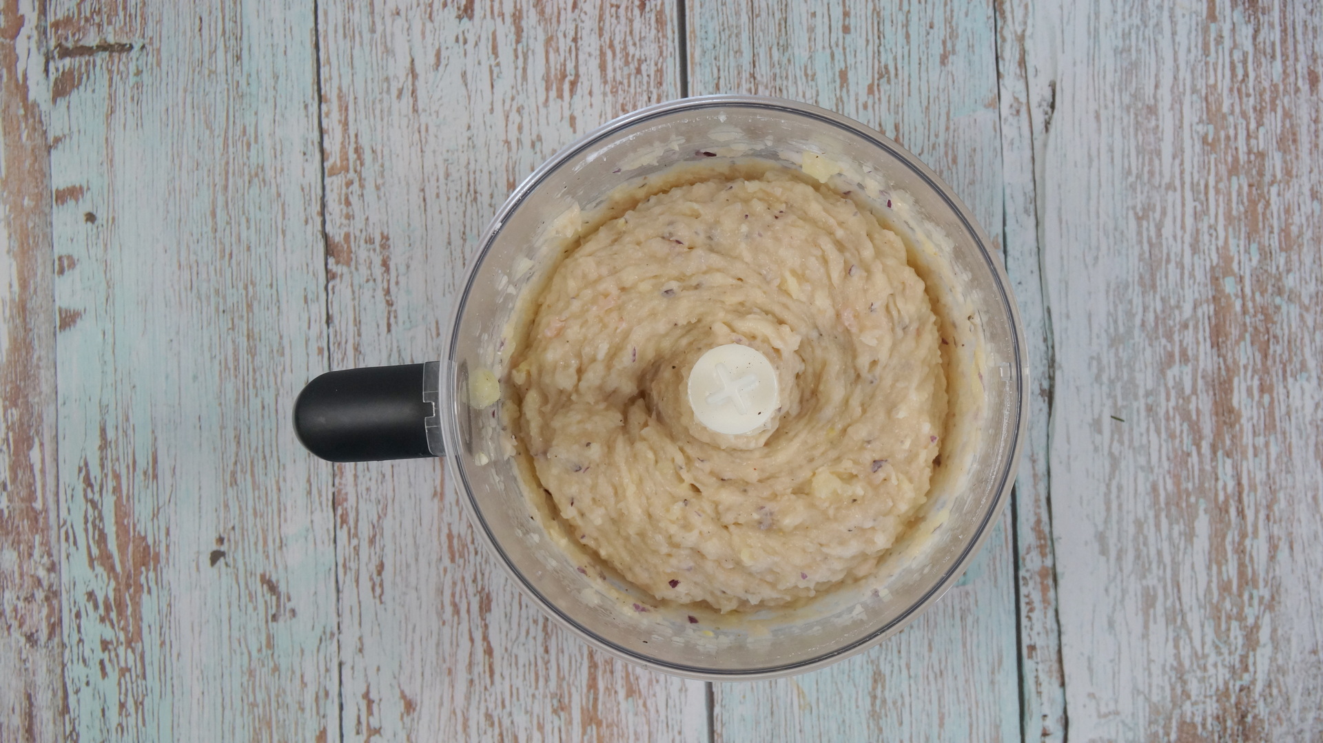 Mod de preparare: Se fierbe cartoful si se lasa sa se raceasca. Pieptul de pui se taie in bucati. Se pun in blender toate ingredientele si se amesteca pana devin o pasta.
