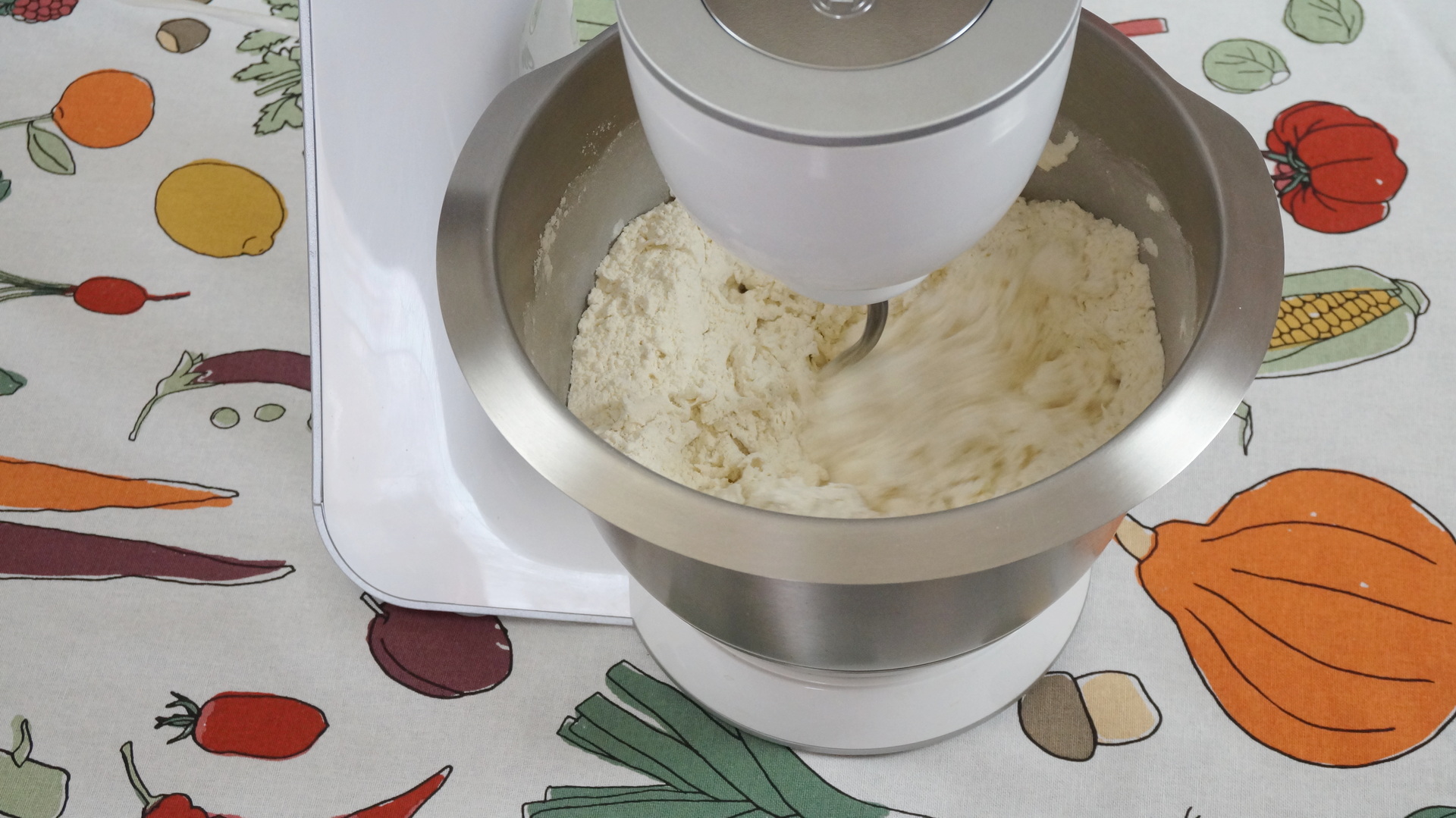 Dupa ce s-a incorporat apa se adauga uleiul de masline.